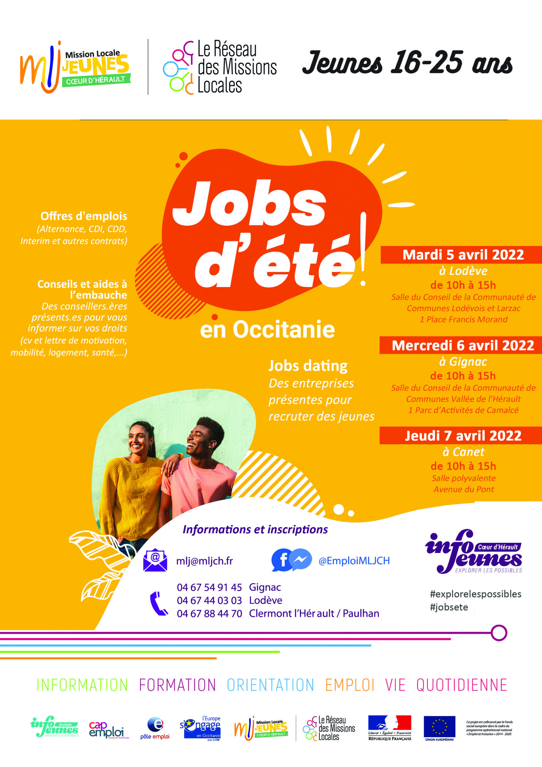 Les journées « Jobs d’Eté 2022 » organisées par le Point Information Jeunesse de la MLJ du Cœur d’Hérault en partenariat avec le Centre Régional Information Jeunesse Occitanie auront lieu :